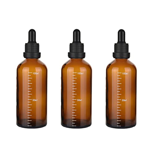 VASANA 3 bottiglie vuote ricaricabili in vetro ambrato e graduato, da 96,4 ml, bottiglie di olio essenziale con pipette contagocce, bottiglie da viaggio per profumi, 100 ml