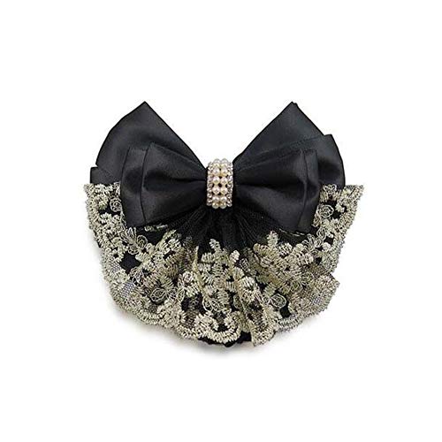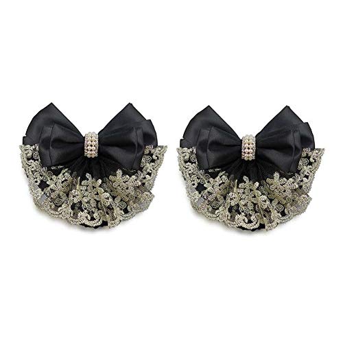 VASANA - 2 fasce professionali per chignon, per capelli, con fiocco, decorazione in pizzo e perle di cristallo, accessori per capelli, per infermieri, banche e padroni di casa, stile rapido