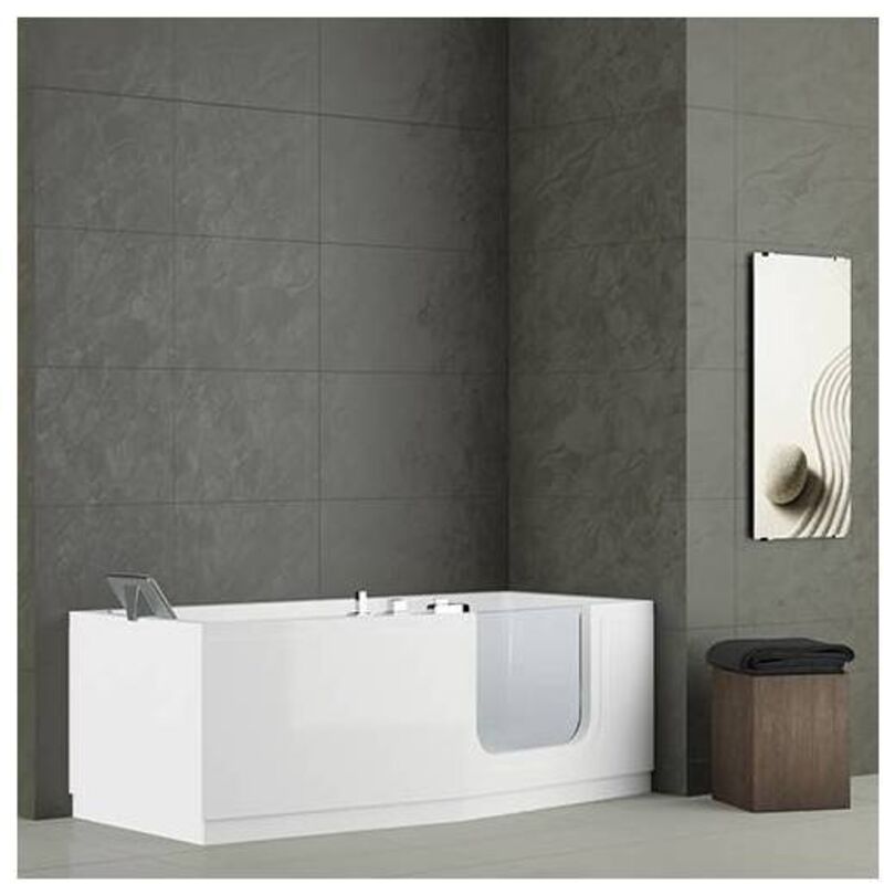 Vasca con accesso facilitato versione standard con telaio. Completa di: n. 2 pannelli in acrilico bianchi, colonna di scarico e rubinetteria. H. 62 cm.(DianFlex)Misura: cm 160 x 70 SX