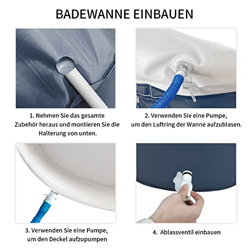 COPERCHIO PROTETTIVO: Questa vasca da bagno è dotata di una copertura protettiva gonfiabile che mantiene l'acqua calda e impedisce a insetti volanti, foglie e detriti di entrare nella vasca quando la si utilizza all'aperto. La vasca da bagno di ghiaccio pieghevole è leggera e portatile, veloce da installare, perfetta per viaggi, hotel, esterni, doccia per camper.