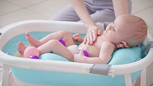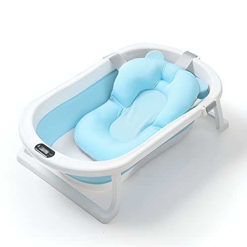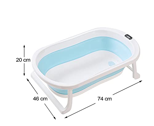 Vasca da Bagno Pieghevole per Neonati/Infanti/Bambini, Vaschetta Portatile per Viaggi e Facile Conservazione, Bagnetto Multifunzionale per Bambini, con Cuscinetto di Supporto e Termometro (Blu)