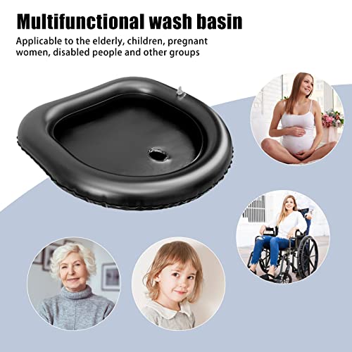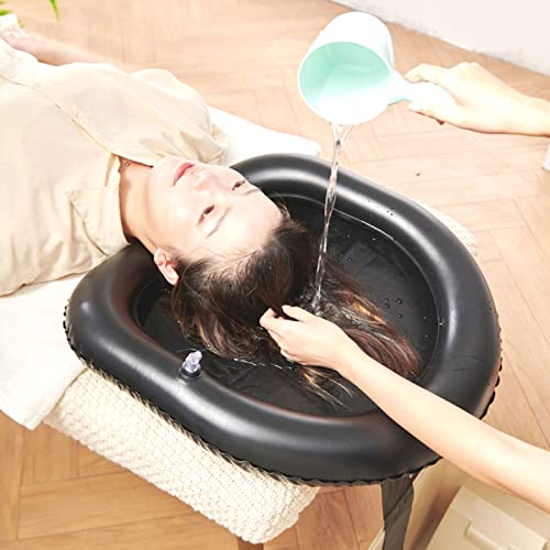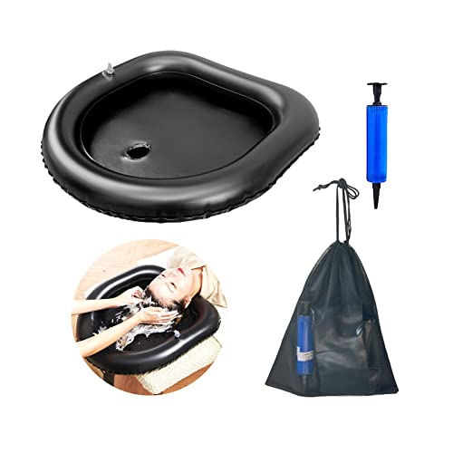 Vasca per shampoo gonfiabile nera con tasca a rete gonfiabile portatile per lavabi per lavabi a letto, disabili, feriti, lavabi per capelli a casa