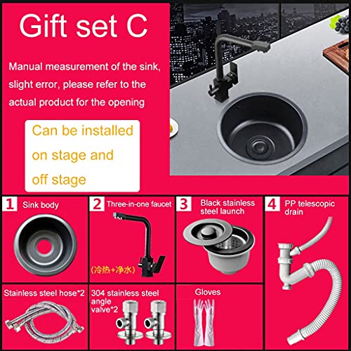 Vasca singola Lavelli da Cucina Rubinetti Miscelatori per Lavello in Acciaio Inossidabile Lavelli Rotondi in Acciaio Inossidabile Bancone Bar Nero Piccola Ciotola Singola