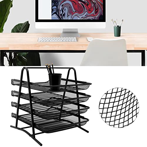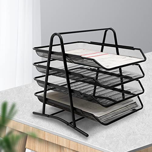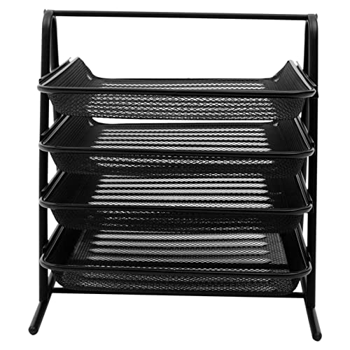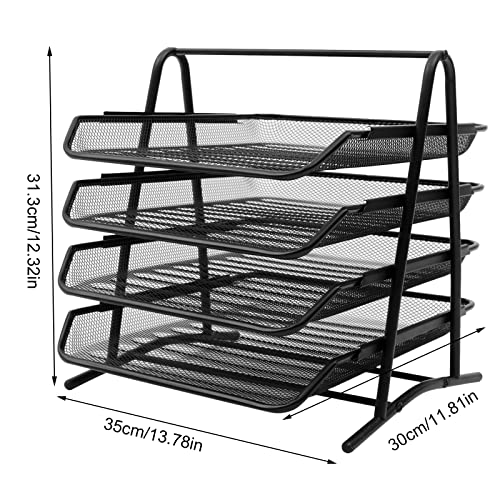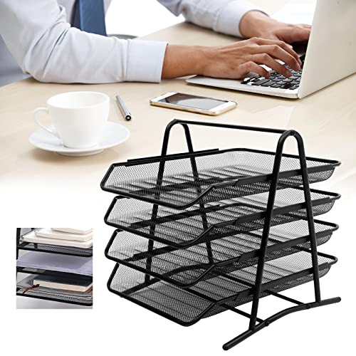 Vaschetta portadocumenti in metallo, 4 scomparti, per ufficio, ufficio, per documenti, scrivania, colore nero