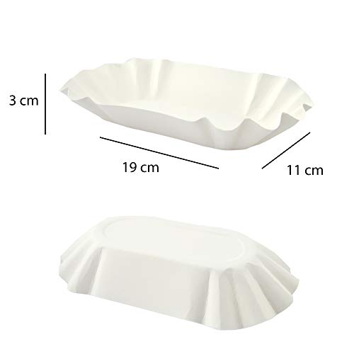 PZ 50 VASCHETTE Bianche 19 CM x 11 CM x H 3 CM BIODEGRADABILI IDONEO A Contenere CIBI Freddi E Caldi Ideale per Dolci, Paste, Cannoli, Biscotti E PASTICCINI