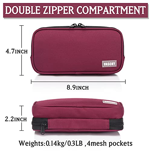 VASCHY Astuccio Scuola, Astuccio Matite Elementare Piccolo Astuccio per Adulti Astuccio Portapenne con Cerniera per Cancelleria Astucci Donna Ufficio Lavoro Borgogna