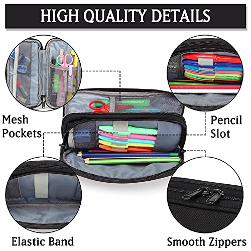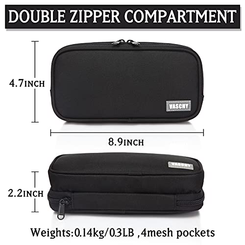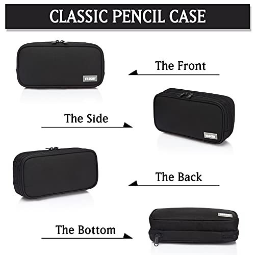VASCHY Astuccio Scuola, Astuccio Matite Elementare Astuccio Piccolo Astuccio Portapenne con Cerniera per Cancelleria Astucci Uomo Ufficio Lavoro Nero