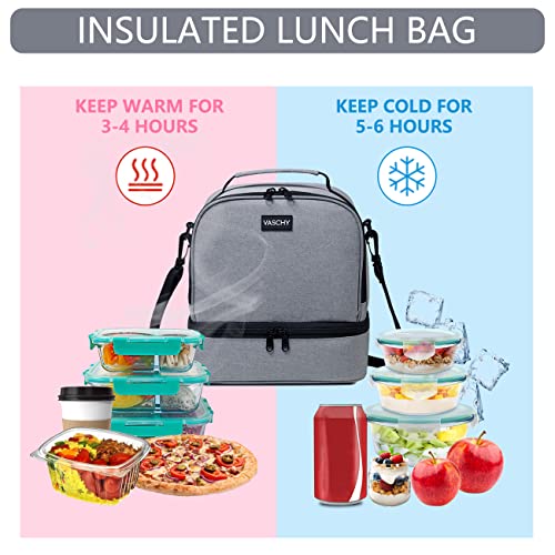 VASCHY Borsa porta Pranzo, Borsa Termica porta Pranzo Borsa Frigo Grande Borsa Pranzo con Tracolla Borse porta Alimenti per Adulti/Bambino Borse da Picnic Scuola Lavoro Grigio