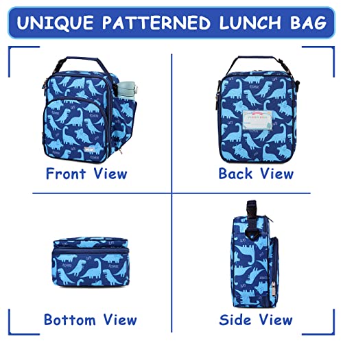 ♥PRATICO: la borsa per il pranzo include uno scomparto principale con cerniera, una tasca frontale per piccoli oggetti essenziali. La tasca laterale è per la tua bottiglia d'acqua o bevanda. 2 modi per trasportare, con la maniglia a fibbia, il tuo piccolo può tenere lo zaino per il pranzo sullo zaino. La tracolla regolabile mantiene le mani libere.