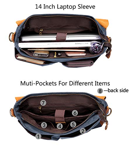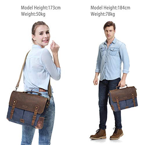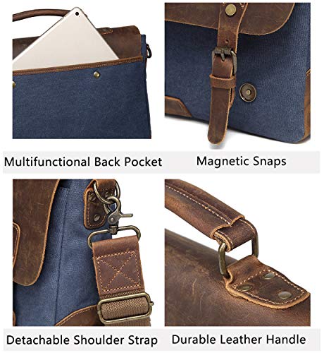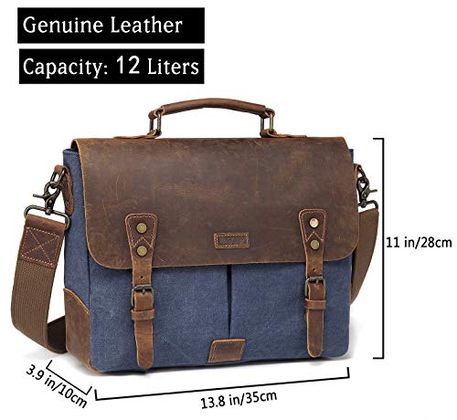 VASCHY Borsa Uomo Tracolla Borsa Messenger Vintage Borse a Spalla Tela Pelle Ventiquattrore Uomo Portatile 14 Pollici Sacchetto del Messaggero Lavoro Blu