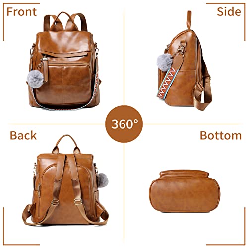 VASCHY Zaino da donna alla moda in pelle PU con coulisse, marrone, Taille unique