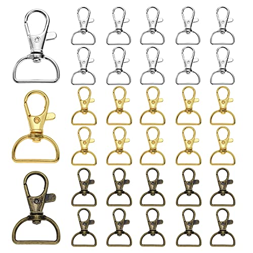 Vasemele Portachiavi Grilletto 30 Pezzi Girevole Catenacci Moschettoni Ganci di Girevole Catenacci Lobster Girevole Trigger Lega di Zinco Girevole Catenacci Catenacci Girevole 25mm Oro/Argento/Bronzo