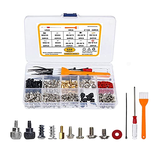 Confezione inclusa: una scatola da 332 pezzi in totale. Contiene 300 viti per computer, 30 fascette per cavi, 1 cacciavite e 1 spazzola.
