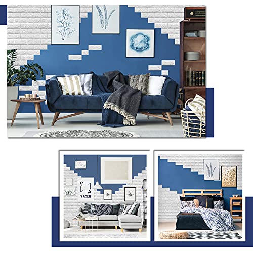 VASEN 20pcs Carta da Parati Adesiva Muro, 77 cm x 70 cm 3D Pannelli Decorativi per Pareti Mattoni per Cucina Soggiorno, in PVC, Bianco