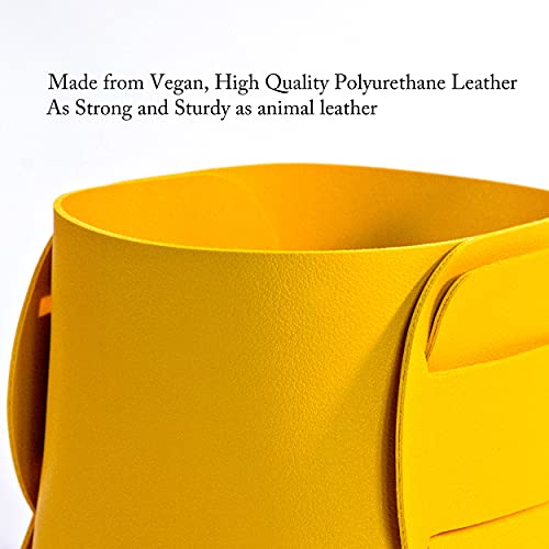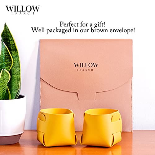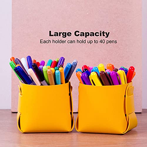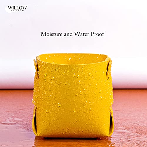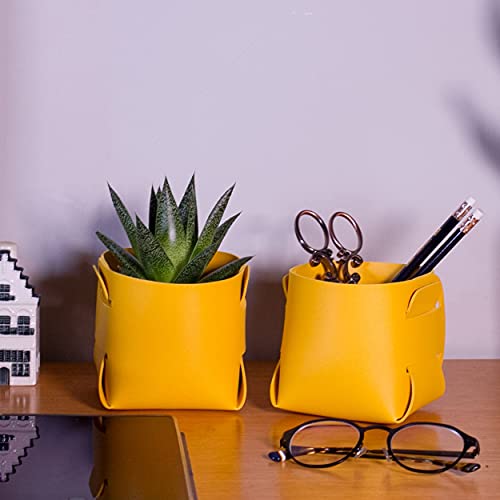 Set di due vasi per piante, da scrivania, portapenne, supporto per telecomando, scopino per trucchi, finta pelle (giallo)