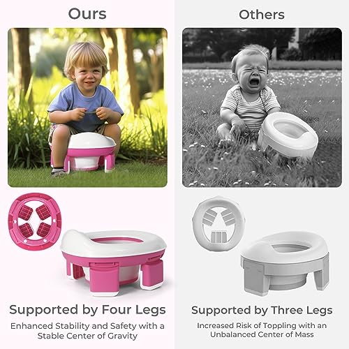 【Il Vasino da Viaggio più Sicuro e Protetto per i Bambini】: Progettata con una struttura di fissaggio a 4 punti più stabile, un sistema di fissaggio a scanalature e 4 gambe di supporto antiscivolo, Adoraland WC Portatile è estremamente sicura per i bambini. Il vasino per bambini Adoraland è inoltre progettato ergonomicamente per adattarsi alla curva delle cosce, in modo da renderlo più confortevole per i bambini e incoraggiare le buone abitudini di educazione alla toilette.