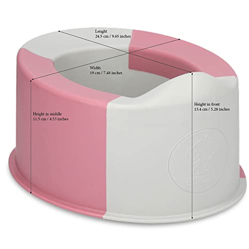 DIMENSIONI: È perfetto per tutti i bambini che devono imparare a usare il vasino (solitamente da 1 a 4 anni). È stato progettato in modo da ridurre la quantità di materiale utilizzato, eliminando i millimetri non necessari senza compromettere la comodità del bambino durante l'uso. Il vasino ha una dimensione dell'area di raccolta standard.