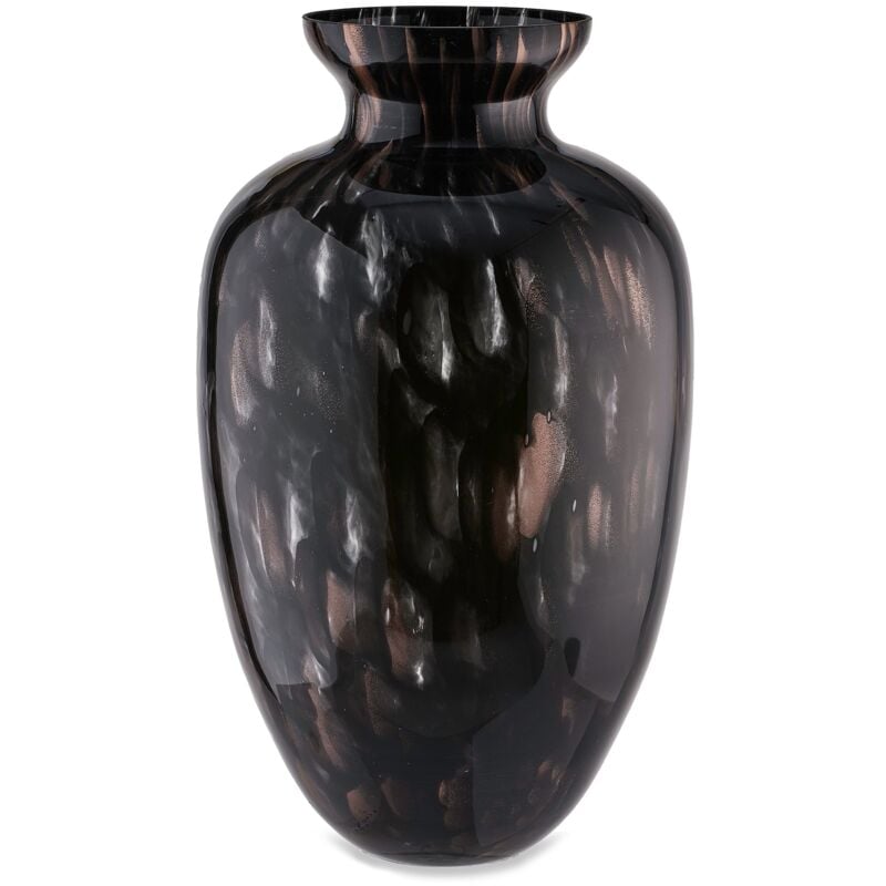 Vaso artigianale nero in vetro di murano dalle forme sinuose lavorato a mano in Italia. Quest'opera artigianale arricchita dalla sua particolare tonalità crea un tocco di grande stile e raffinatezza in qualsiasi ambiente. Collezione: REINESSANCE Dimensioni: Ø 26 h 56 Made in Italy. Trattandosi di articoli di natura artigianale e lavorati a mano le foto potrebbero leggermente differire dalla realtà.