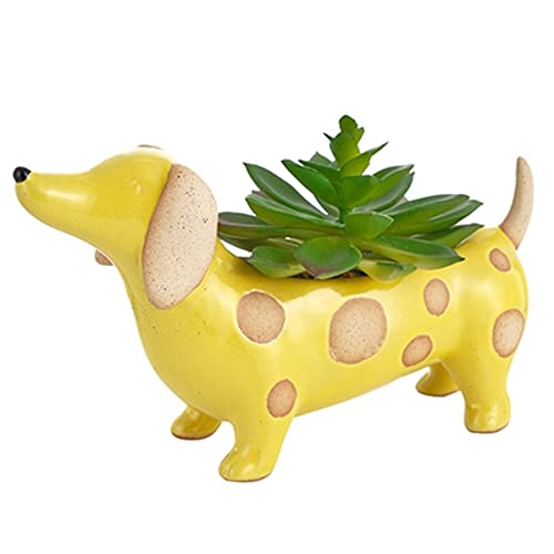 Vaso Bassotto in ceramica gialla con pois e piantina sintetica 12(H) cm