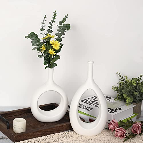 Vaso in ceramica Set di 2, Vaso di fiori Moderno Decorativo Vuoto Geometrico Vaso per Nozze Cena Tavolo Festa Soggiorno Ufficio Camera da letto