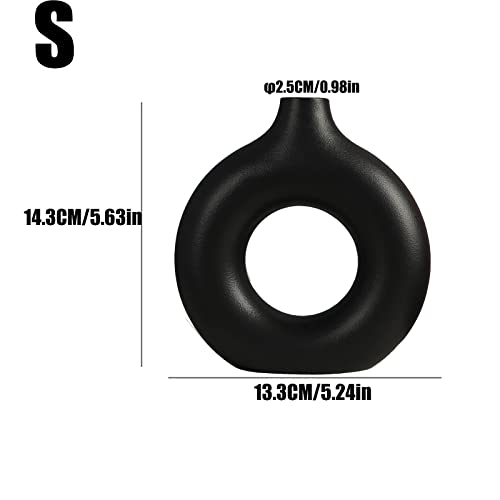 Vaso per ciambella nero decorazione moderna in ceramica per erba della pampa fiori secchi vaso fatto a mano vaso creativo per ciambelle design cavo per da tavolo per la casa e l'ufficio (S)
