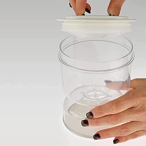[Design di separazione bagnato e asciutto]: C'è un contenitore sulla parte superiore si collega al contenitore inferiore attraverso un'apertura stretta. Questo design consente al liquido di raggiungere il fondo mentre il cibo rimane in cima. Niente più le mani bloccate in un barattolo di sottaceti o affrontare situazioni appiccicose! Il coperchio è ermetico in modo che non si rovesci quando lo si ripone al rialzo.