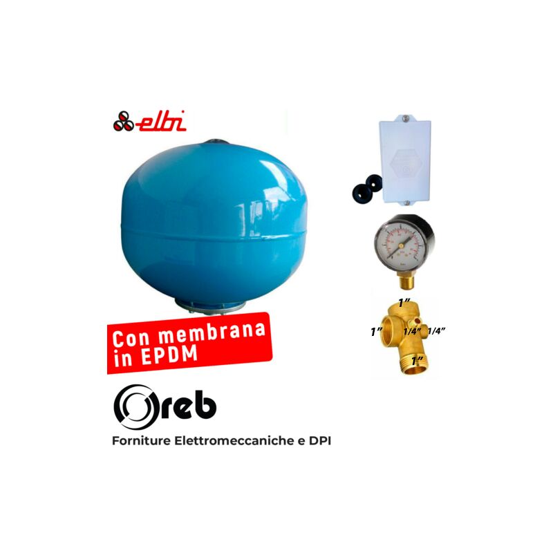 KIT AUTOCLAVE IDROSFERA 24LT. PRESSOSTATO PM5G RACCORDO 5 VIE MANOMETRO RADIALE Kit autoclave composto da: Idrosfera a membrana intercambiabile 24 Lt. Fornito di membrana utilizzabile anche come vaso di espansione sanitario fino ad una temperatura massima di progetto pari a +99°C. Pressostato PM5G ITALTECNICA Raccordo 5 vie in ottone 82 mm Manometro ad attacco radiale 50 mm Effettuare un acquisto presso il nostro negozio significa garantirsi un prodotto con SCONTRINO FISCALE o . La fattura va richiesta subito dopo l´acquisto comunicandoci tutti i dati societariattraverso messaggio Il pagamento può essere effettuate scegliendo uno dei metodi da noi accettati: PAYPAL (e quindi qualsiasi carta di credito accettata da questo circuito) BONIFICO BANCARIO - CONTRASSEGNO . Se scegli il BONIFICO BANCARIO inviaci la ricevuta di avvenuto bonifico all´indirizzo Il pagamento in CONTRASSEGNO prevede un costo aggiuntivo che varia da un min. di EURO 5,00 ad un massimo di EURO 7,00. entro le 24 ore