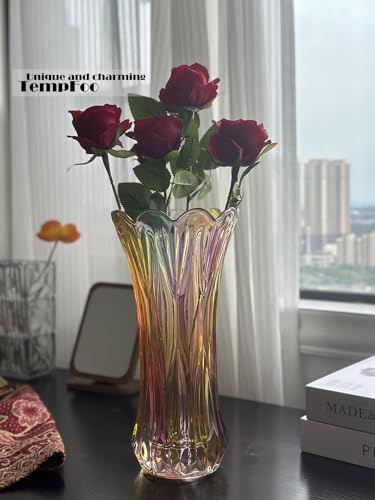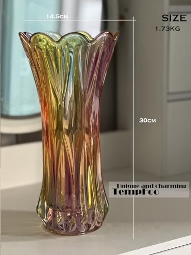 Vaso Fiori Decorativo da Interno - Soprammobili Moderni, Vasi Vetro Decorativi in Grande Alto Cristallo Colorato, Centrotavola Moderno Design per Decorazioni Casa, Idee Regalo Donna Compleanno Natale