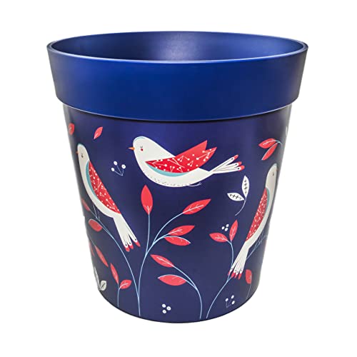 Vaso da Fiori Hum, Uccelli Blu, Vaso in plastica, fioriera per Esterni e Interni, 25 cm x 25 cm