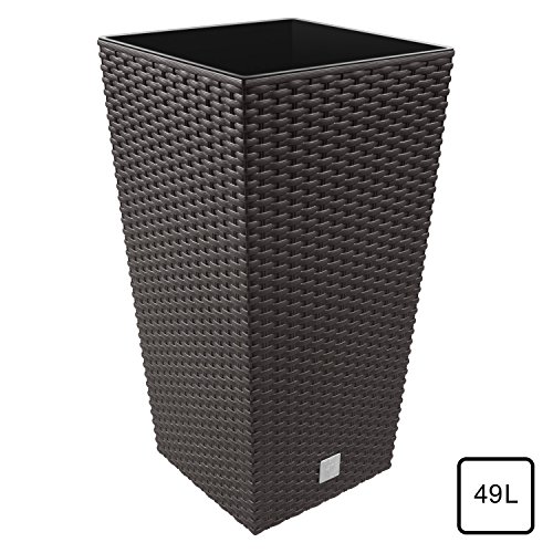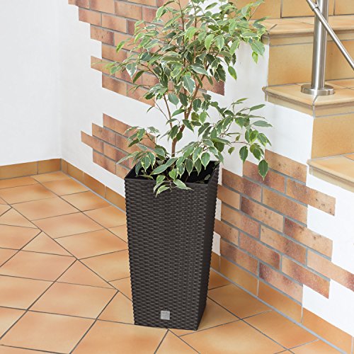 Vaso per piante Rato Square simil rattan 49 Lt altezza 61,5 cm con inserto colore: marrone grigiastro