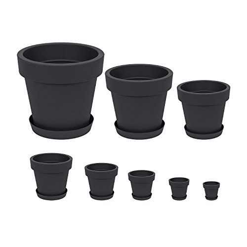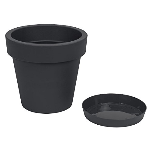 Vaso per piante con sottovaso serie Lofly bordato, altezza 23 cm, colore: antracite
