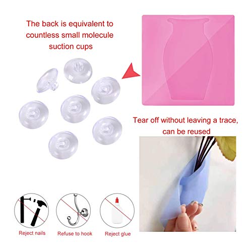 Vaso in Silicone di Fiori Appiccicosi Vaso in Silicone da Parete Rimovibili Vaso Magico Vaso Rimovibile e Riutilizzabile per Fiori Casa Soggiorno Bagno Festa di Nozze e Ufficio Blu Bianca Rosa 3 Pezzi