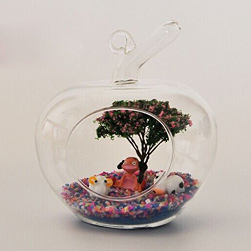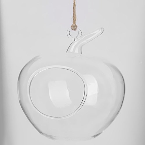 Vaso Vetro A Forma di Mela Porta Fiore Piante Decorazioni Casa Giardino, Appendibile, Misura 10x10cm