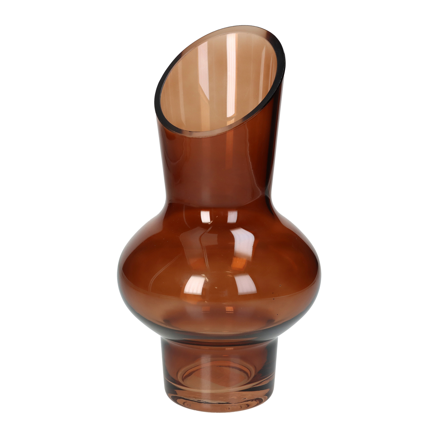 Completa l'arredo della tua casa con questo vaso in vetro ambrato dal design bombato, ideale per accompagnare moderate composizioni floreali e vegetali. Ispirato allo stile vintage, si adatta perfettamente a qualsiasi arredo, incluso ai più moderni e contemporanei. Potrai usarlo per disporre fiori o decorazioni vegetali con stelo lungo, oppure puoi esporlo come semplice complemento d'arredo da posizionare su mensole, mobili o tavoli aggiungendo un tocco retrò ai tuoi spazi abitativi. Misure: 13x23x13 cm.