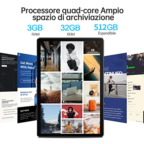★【TABLET AD ALTE PRESTAZIONI E REGALI SQUISITI】 Questo tablet Android 11 da 10 pollici è dotato di 3 GB di RAM da 32 GB e un massimo di 128 GB espansi (NON incluso) non dovrai più preoccuparti dello spazio di archiviazione, semplificando l'archiviazione di video ecc. Il tablet Android da 10 pollici è certificato da GMS. Puoi scaricare Netflix, Google Meet, YouTube e altre applicazioni sul tuo tablet, che è molto adatto per lo studio e il lavoro.