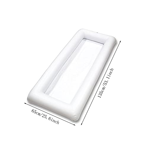 Confezione: 1 vassoio gonfiabile per piscina, bianco, dimensioni: 135*65 cm. Il prodotto contiene tappi di scarico e tappi gonfiabili per drenare o gonfiare. I prodotti sono imballati con cura, quindi non è necessario preoccuparsi di danni al prodotto durante il trasporto.