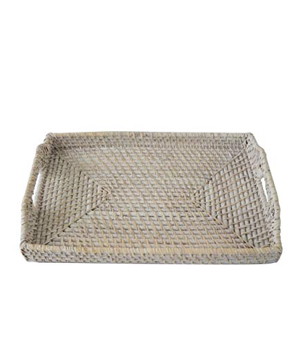Vassoi e piatti in vimini con manici, realizzati a mano, per colazione, cibo, piatto, caffè, pane, per casa e ristoranti 12 x 17 (White)