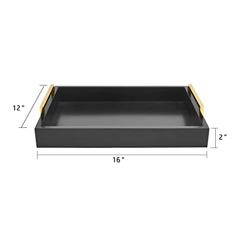Vassoi da portata con manici, 40,6 x 30,5 cm, vassoio decorativo nero, vassoio ottomano, vassoio decorativo per soggiorno, bagno e esterni (nero)
