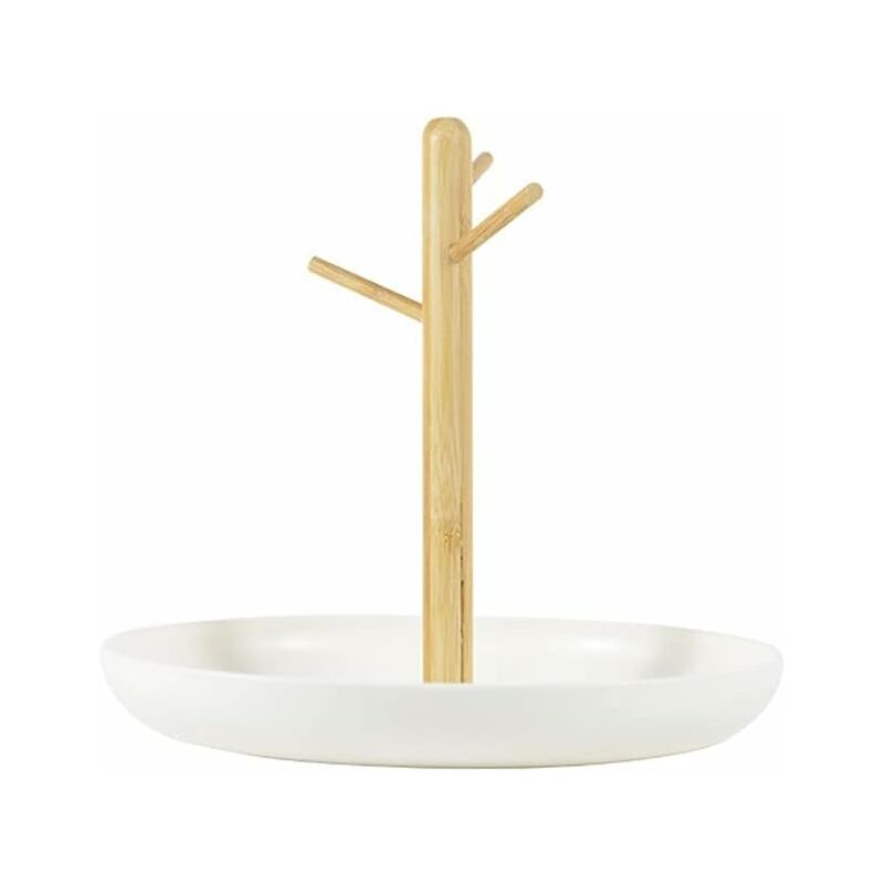 I rami possono appendere chiavi, gioielli, cerchietti e vassoi per anelli, occhiali, orologi, ecc. Materiale: Plastica ABS + bambù, la perfetta combinazione di decorazione e conservazione. Usa: Può essere posizionato su qualsiasi scrivania per riporre piccoli oggetti, come B. alcune chiavi all'ingresso del corridoio e altre etichette. Può essere usato come decorazione della stanza. Il vassoio può essere utilizzato anche per snack o come portafrutta.