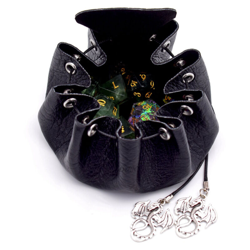antigraffio che proteggerà sia i tuoi preziosi dadi che le superfici del tavolo. La nostra custodia in pelle con il cavo è stato progettato per un aspetto, una sensazione e una funzionalità superiori! Contiene più di 50 dadi standard per giochi di ruolo: la nostra borsa per dadi I dadi in pelle DnD proteggono fino a 7 set completi dei tuoi dadi RPG preferiti. Questa custodia in pelle con coulisse offre la comodità di da una piccola borsa a dadi con l'abilità conservazione di una custodia più grande. dadi e vassoio da Funzionalità: Espandi completamente la borsa. dadi con coulisse per una superficie di corsa piatta di 9,75 pollici o lasciare il cordoncino parzialmente teso. per creare un vassoio dadi con i lati rialzati per evitare che i dadi rimbalzino. Elegante design in rilievo: questa borsa in pelle con coulisse presenta un motivo