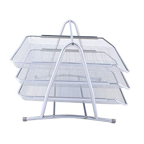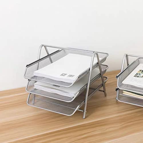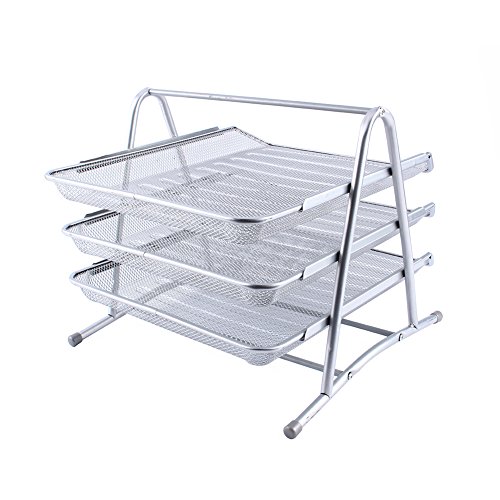 Vassoio per documenti impilabile, Portadocumenti da ufficio a 3 ripiani per scrivania Vaschette Porta-Documenti e Lettere da Scrivania in Metallo, Argento, 36 * 31 * 26.5 cm