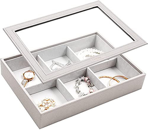 Vee Vassoio per Gioielli, Portagioie Donna, Porta Gioielli a Pila, Porta Orecchini, Gioielli Organizzatore Orecchini, Scatola Porta Gioielli con Coperchio in vetro temperato, Idea Regalo (Grigio#2)