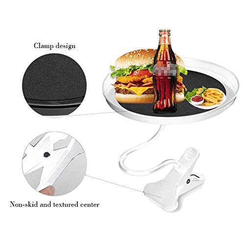 Vassoio girevole per auto, Supporto per alimenti regolabile a 360 gradi Vassoio per alimenti rotondo per auto con staffa a morsetto Vassoio girevole antiscivolo per scrivania da tavolo per automobile