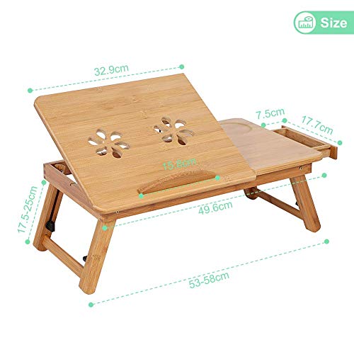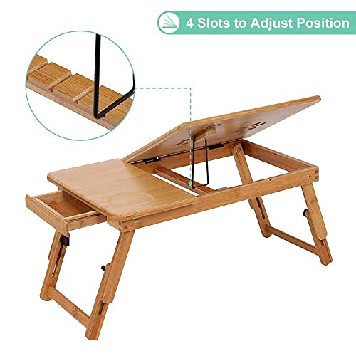 Vassoio da Letto Tavolino PC Letto, Tavolino Computer Letto,Vassoio da Letto Pieghevole Bambu, Tavolino da Letto Vassoio da Letto, per Portatile Computer Portatile per Colazione con Cassetto