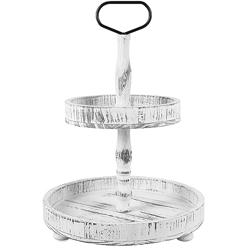 Vassoio a livelli autunnale Vassoio a livelli in legno a 2 livelli Decor Vassoio a livelli per fattoria con manico in metallo Vassoio da portata a livelli staccabile Facile da montare Vassoio
