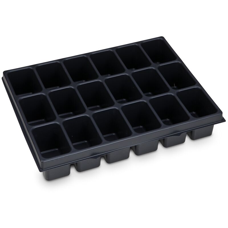 Cosa è incluso ? - 1x scatola di piccole parti 18 Muden iB 72 Descrizione del prodotto: La rastrelliera per minuteria 18 Muden iB 72 offre un'opzione di stoccaggio economica per l'i-BOXX 72 e l'LS-Tray 72. Realizzato in plastica termoformata, il rack è dotato di 18 scomparti che offrono ampio spazio per le piccole parti. Con una lunghezza di 63 mm e una larghezza di 265 mm, si adatta perfettamente a questi sistemi di stoccaggio.