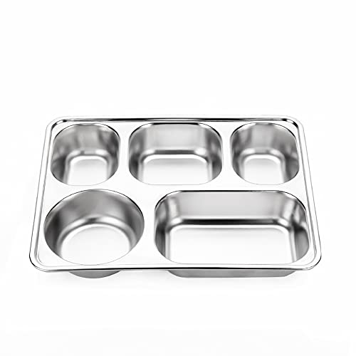 Vassoio per piatti divisi in acciaio inossidabile, piatto da pranzo a 5 scomparti, vassoio rettangolare diviso per adulti, piatto da portata compatto in metallo, snack da cena, piatti da campeggio