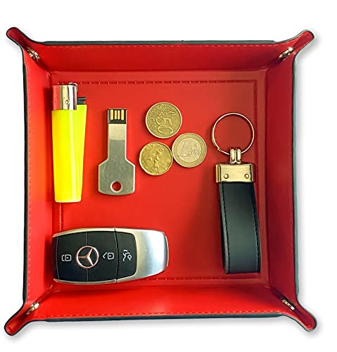 Vassoio Porta Oggetti svuota Tasche Bicolore con Chiusura a Bottoni in Poliuretano. Utile Porta Oggetti da scrivania (Blu/Rosso Veneziano)