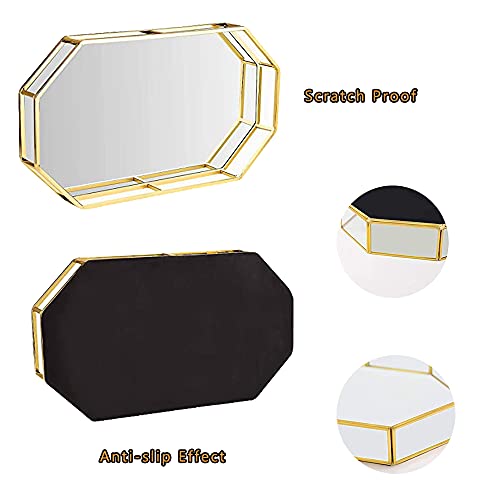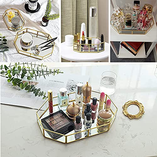Vassoio Portaoggetti a Specchio Oro in Vetro,Vassoio Decorativo in Metallo Scatola di Immagazzinaggio per Cosmetici Gioielli Bagno,Vassoi da Toletta,215 x 145 x 42mm