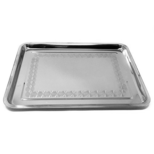 Del - Vassoio da Portata Rettangolare in Acciaio Inox con Cerchi Decorativi - 45 x 35 cm - Argento
